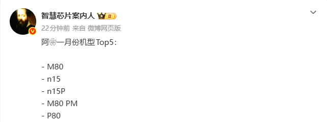 【CNMO科技】2月10日股票配资有哪些门户网,数码博主“智慧芯片案内人”公布了2026年1月华为销量前五的手机型号。其中,华为Mate 80获得当月销冠。