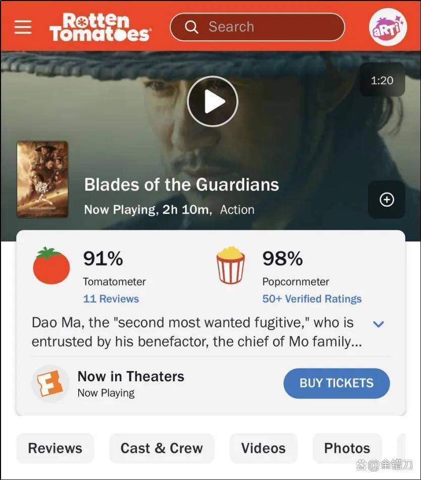 在海外烂番茄上,《镖人》的口碑更夸张,收获了91%的新鲜度和98%的爆米花指数。