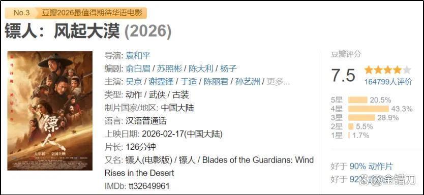 2026年春节档,《镖人:风起大漠》(下文简称《镖人》)是最大的意外。