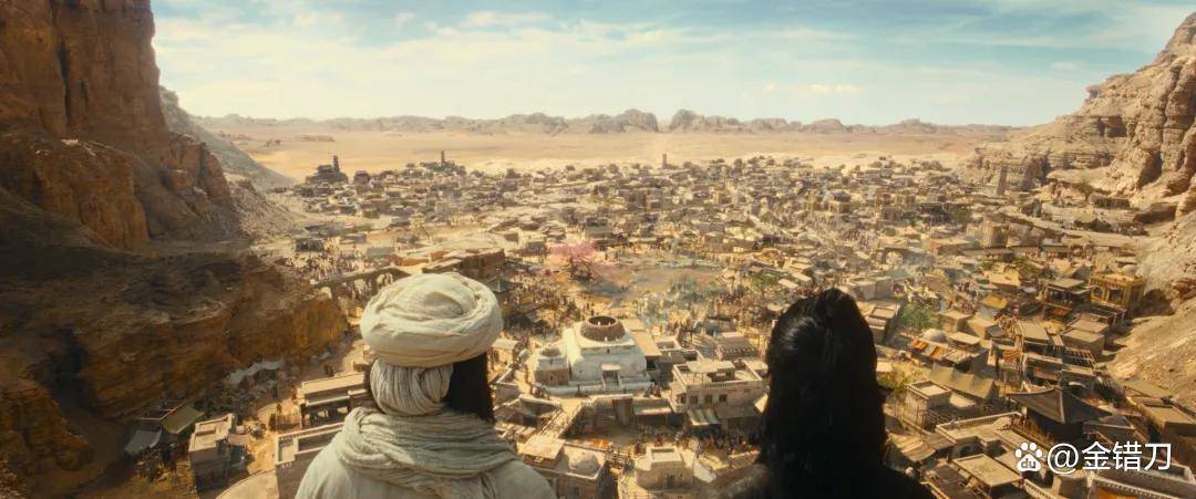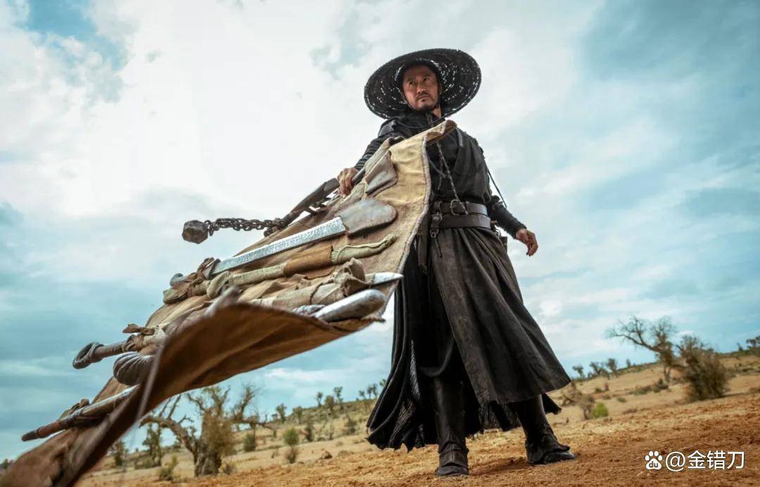 网传《镖人》制作成本5-7亿。光是在吐鲁番搭出一座3万平米的西域古城“赤沙镇”,就耗资1.2亿。影片的服装道具也十分考究,从建筑裂痕到兵器纹饰,全按隋末文献考据。