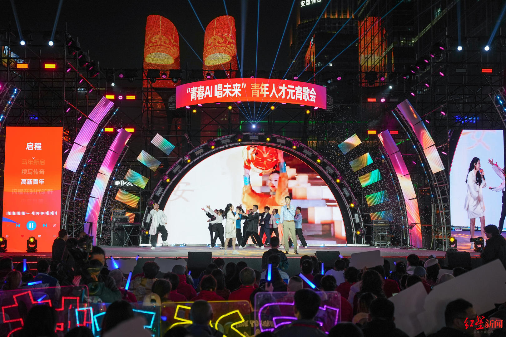 活动当晚,青年人才元宵歌会精彩纷呈。不同于传统晚会,本次歌会的演唱者、词曲创作者大多来自成都高新区电子信息、生物医药、数字经济及未来科技等产业一线。他们与AI携手,将代码转化为有温度的音符,推出了《答案》《脉搏》《数说》等6首以产业工作与日常生活为背景的主题歌曲。