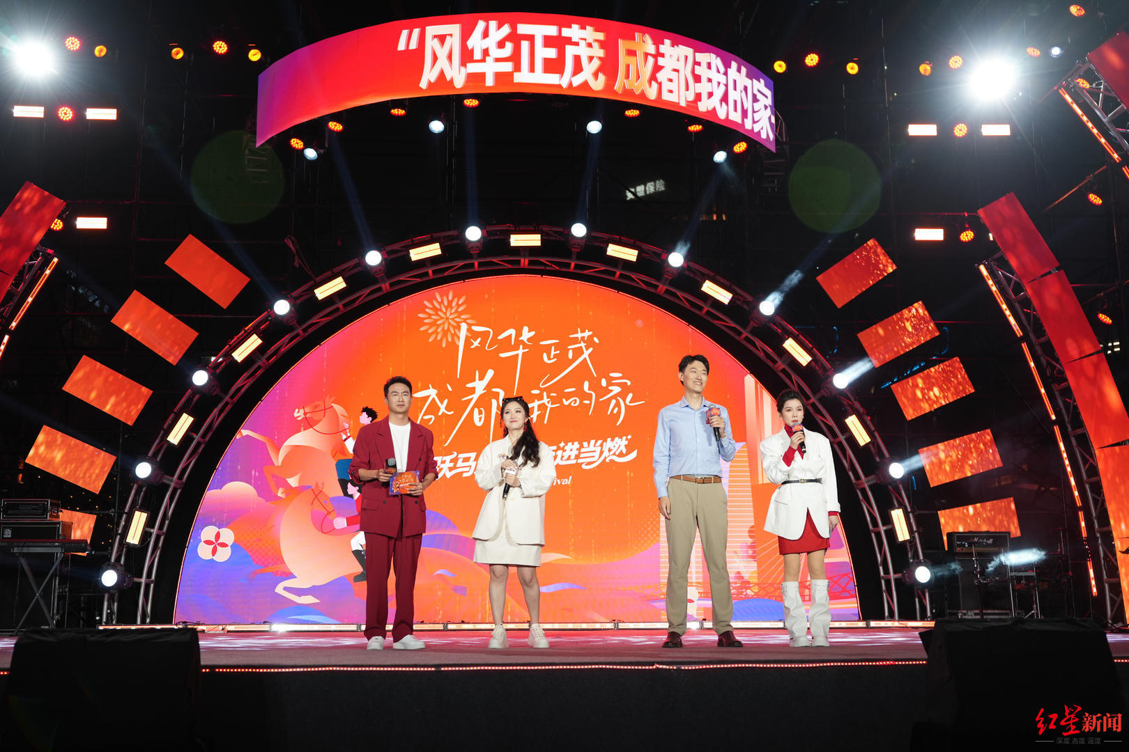 歌会现场,即将在成都高新区迎来首演的德云社西南首店送来“云祝福”。郭德纲、于谦以视频形式登上天府双塔和舞台屏幕,向市民送上元宵节祝福,并通过现场互动环节赠送门票。《赵子龙》等2026年首发首秀的“成都造”也面向公众预热,展现成都高新区作为数字文创高地的最新成果。