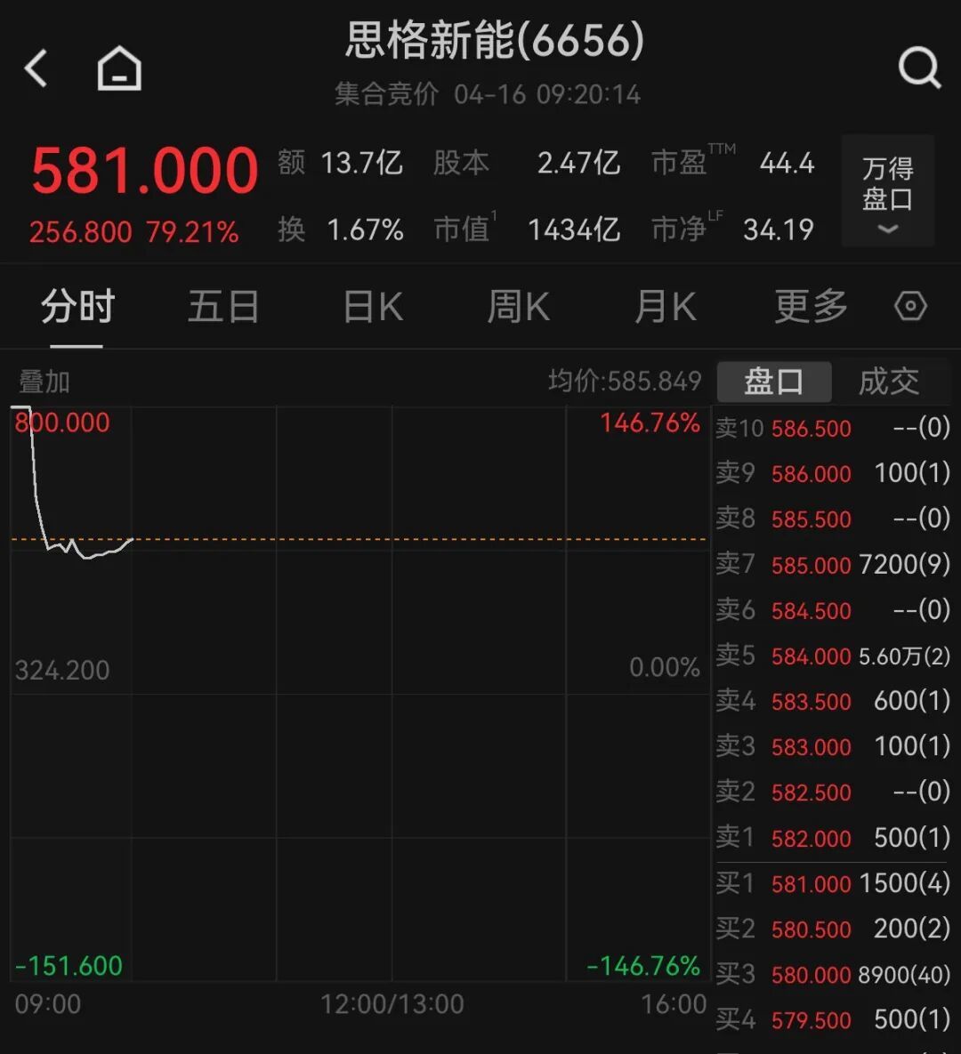 思格新能上市首日高开近80%,总市值超1400亿港元。