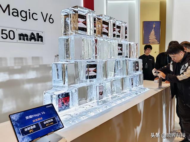 Magic V6搭载2800MPa盾构钢铰链,材料强度超过汽车A柱标准,通过3150吨航空级锻造工艺,结构可靠性较上一代提升40%。它也是全球首款同时通过IP68+IP69双重认证的折叠设备,可应对深水浸泡、高温喷淋等极端环境,发布会现场甚至设置了拳击屏幕、冰封手机等互动体验区,直观展示其“耐造”属性。