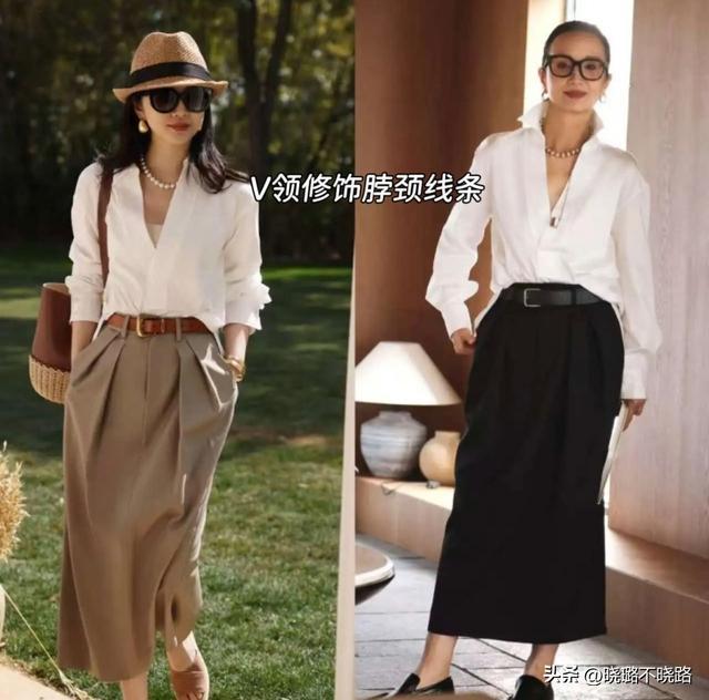 细节的剪裁设计可以让你比同龄人看起来更懂时尚,像图中这种V领剪裁的上衣,是很多女性都不曾尝试的设计。我们先来介绍这种非圆领或翻折领款式的上衣,它的优势就是能够为你打造出领口部分的不对称线条,同时为你拉扯脖子的长度,瞬间就优化了头肩比例。