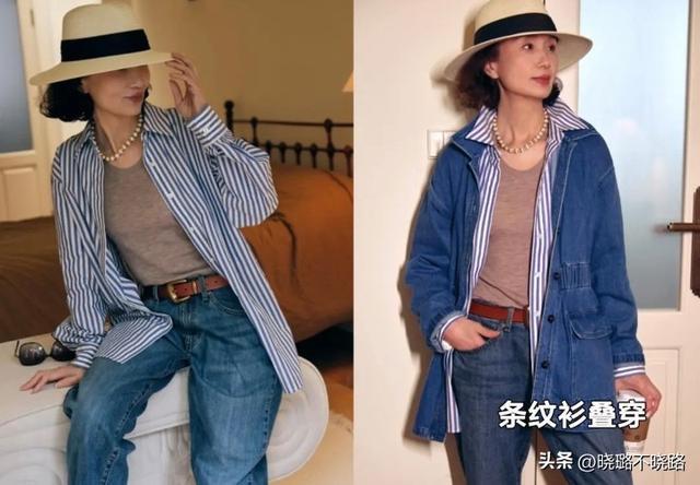 像图中这种横条或者竖条纹的点缀,就是中年女性的最好选择,线条感的修饰避免了花纹的繁乱感,仅仅是利用线条感的上衣单品来作为修饰,整体造型的层次感就凸显出来,其他单品用单色系缩减膨胀感,整体造型看起来灵动又不沉闷。
